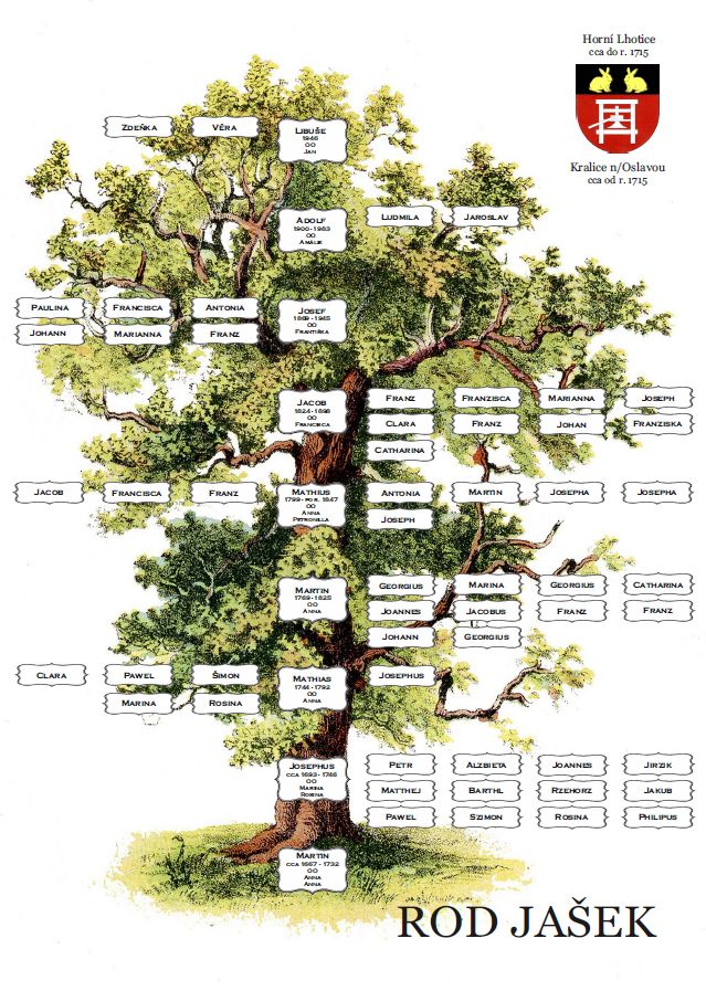 Jelikož se ne vždy dochovají dobové fotografie, které chcete použít. Nebo je nelze dodat k vytvoření rodového stromu s těmito doplňky, lze zvolit i variantu klasičtější. V této verzi jsem zobrazení jsem zvolila částečný rozrod rodu. Při úplném by byli uvedeni i případní partneři sourozenců osoby hlavní linie a jejich děti.