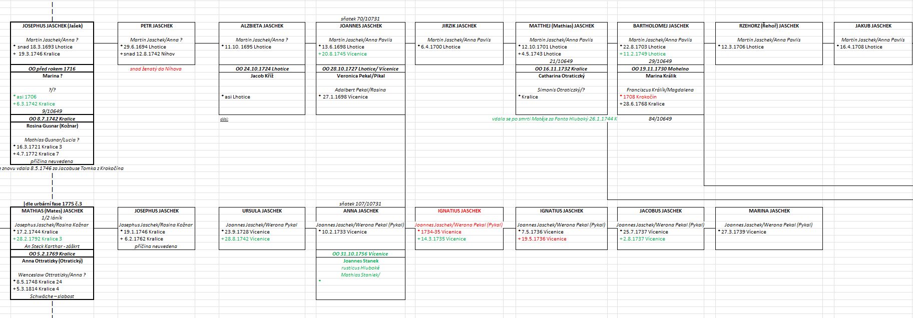 Zároveň jsem si všechna data a propojení mezi nalezenými předky začala zapisovat do programu Microsoft Excel (tabulkový procesor od firmy Microsoft ), protože mi tento způsob připadal přehlednější a pro všechny dostupný.
